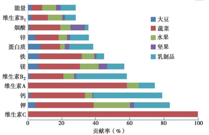 蔬菜、水果、全谷物、奶类和豆类是人类膳食的重要组成部分,富含人体所需要的维生素、矿物质、膳食纤维和植物化学物,奶类和大豆类也是优质蛋白质的重要来源。