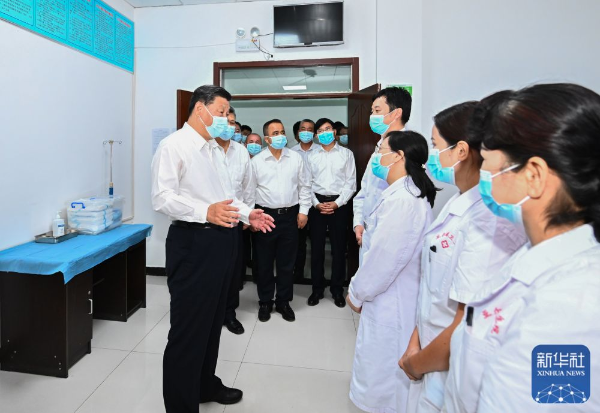 ▲7月12日至15日,中共中央总书记、国家主席、中央军委主席习近平在新疆考察。这是14日,习近平在吐鲁番市高昌区亚尔镇新城片区新城西门村党群服务中心医务室考察。新华社记者 燕雁 摄