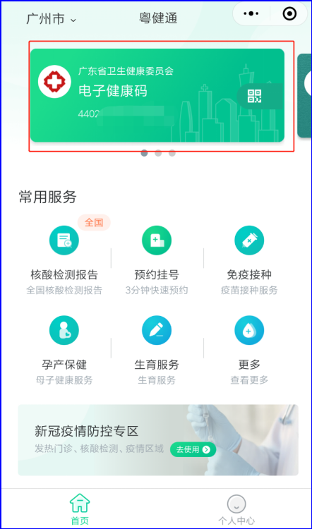 首先,关注“粤健通”小程序